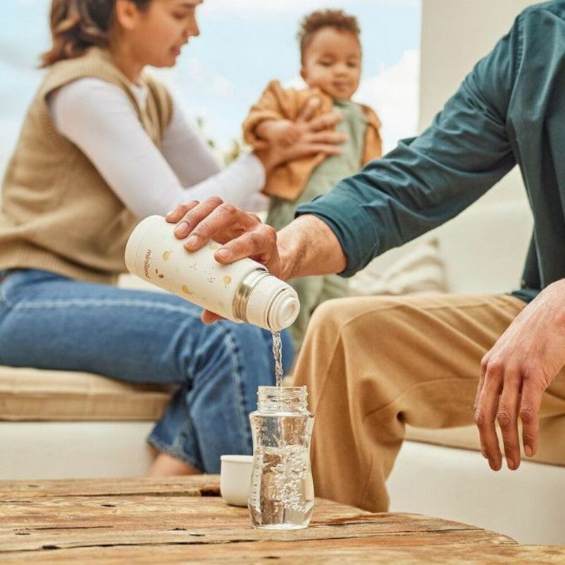 Durante mais de 24 horas, o termo Thermy mantém a temperatura do líquido no interior graças às paredes duplas em Aço Inoxidável e câmara de vácuo.Prepare o leite para o bebé em casa e conserve-o à temperatura ideal dentro do termo quando vai passear. Quando chega a hora de alimentar o bebé, basta verter o líquido para o biberãoO Aço de 18/8 (Aço 304) encontrado no interior apresenta uma boa condução térmica e ótima resistência a altas temperaturas, tornando-se o mais adequado para conservar alimentos. O termo Thermy term um sistema de abertura simples de verter para o biberão. No final da utilização, o fecho por toque conserva o líquido seguro, sem necessidade de desenrocar a tampa interior
