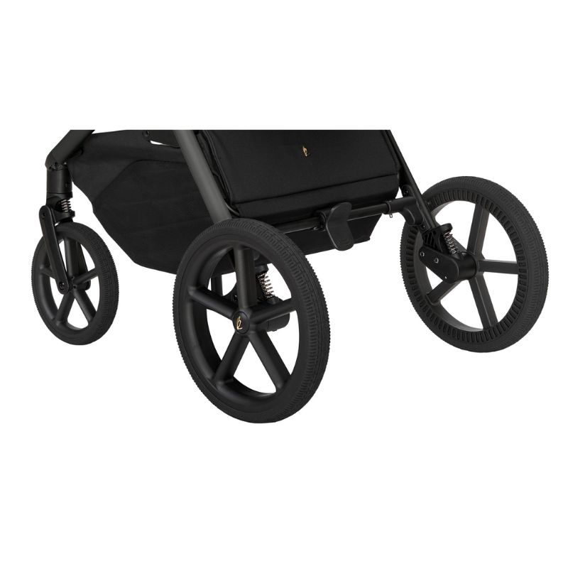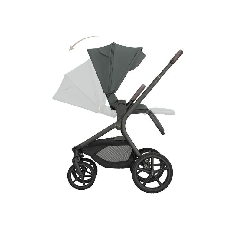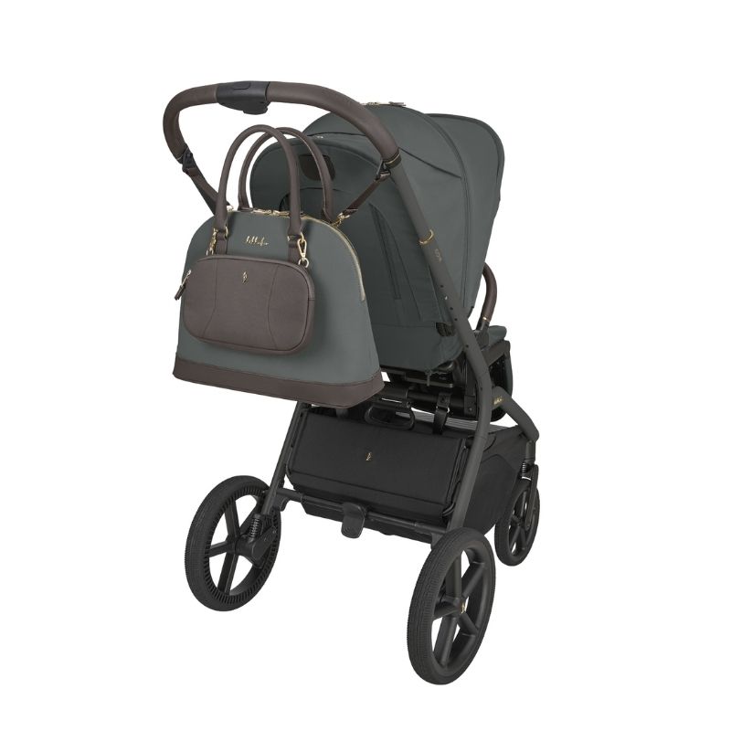 Uso desde o nascimento até 22 kg. Chassi leve de alumínio com linhas elegantes e uma estrutura estável que se mantém em pé sozinha após ser fechada (juntamente com o assento). Fácil de transportar: Inclui uma alça de ombro ajustável e uma alça de mão para facilitar o transporte do carrinho dobrado. O assento oferece conforto excepcional, 2 posições de ajuste de altura e 3 posições de reclinação. Encosto de costas com aberturas de ventilação para melhor circulação de ar. Unidade do assento com botões de memória para fácil remoção com uma só mão. Alça de empurrar em couro luxuoso, ajustável em 5 posições diferentes. Fivela magnética inovadora: sistema de arnês de 5 pontos com fivela magnética e almofadas macias. Suspensão nas quatro rodas e rodas de alta qualidade e resistentes ao desgaste (11,5" na traseira e 8" na dianteira). Manobrabilidade sem esforço: Rodas dianteiras com rotação de 360 graus e mecanismo de travagem. Cesto grande com fecho magnético e capacidade para até 10 kg. Certificado de segurança: Testado de acordo com a norma EN 1888-2:2018+A1:2022 pela SGS. Dimensões aberto: 76 × 56,5 × 98–111 cm Dimensões fechado: com assento: 67 × 56,5 × 44 cm / com alcofa: 67 × 56,5 × 46 cm Peso: 11,1 kg Tecido impermeável com fator de proteção solar UPF 50+, cobertura ampla com extensão que abre com fecho e proteção solar adicional. Sistema de fecho exclusivo: Fecha de forma compacta com a alcofa diretamente na estrutura do carrinho de bebé. Ajuste de altura: possui ajuste de altura em 2 posições para uma proximidade ideal com a criança. Capota extensível: cobertura protetora adicional para máxima sombra e janelas perfuradas para melhor ventilação. Colchão macio de dupla face com tecido aveludado para o inverno e tem tela respirável para o verão.