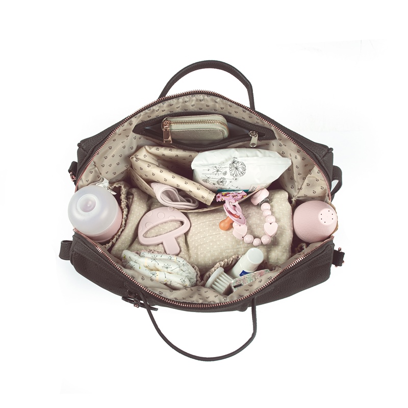 O saco de Passeio London é em couro sintético preto com estrelas gravadas. É muito elegante e prático e tem uma grande capacidade para transportar tudo o que o seu bebé necessita. Inclui alça longa para pendurar no ombro, pega de transporte e pega curta para pendurar no carrinho de bebé.