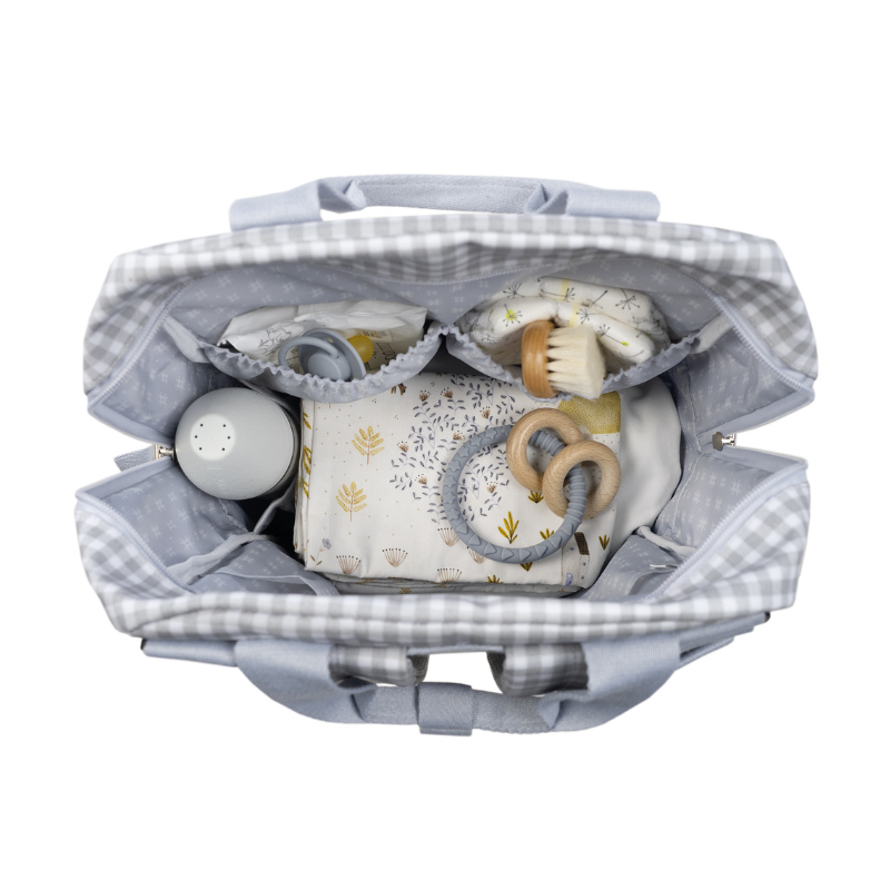 Um saco e mochila ao mesmo tempo, muito moderna e urbana, ideal para transportar suas coisas e as do seu bebé, com muito estilo, para todos os seus passeios. A mochila para carrinho I love Vichy é um modelo multifuncional muito leve, resistente e de grande capacidade para transportar tudo o que você precisa no andar do bebé. O seu esquema oferece vários bolsos exteriores e interiores para manter tudo organizado e à mão. Possui bolsos para guardar as garrafas e mantê-las seguras, elástico para colocar talheres, para toalhitas, também possui tampa para garrafa de água e muito mais. Inclui um muda fraldas para combinar com a bolsa de maternidade e um bolso plastificado para armazenar roupas molhadas e isolar a humidade do resto da mochila. A bolsa inclui 2 alças curtas ajustáveis ​​que facilitam a colocação em qualquer modelo de carrinho, alças e alças acolchoadas para pendurar dos ombros para as costas, sem gerar desconforto com o peso. Ótima qualidade e muito estilo.