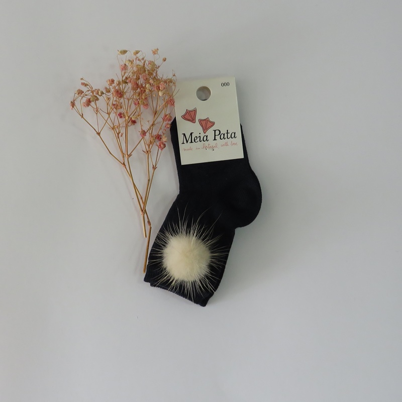 Meia canelada pelo joelho azul marinho com pompom de pêlo da Meia Pata 1