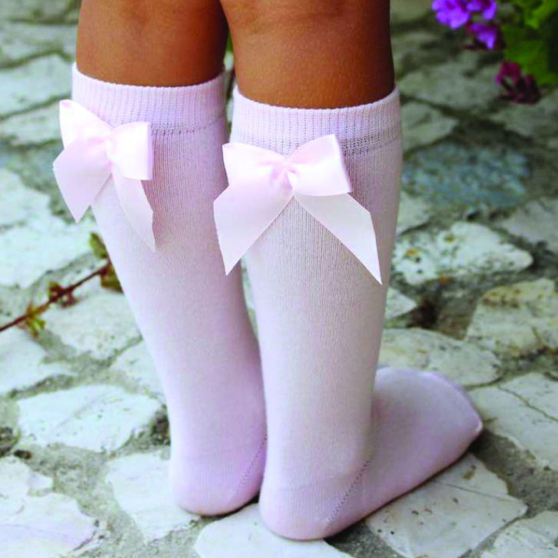 Meia lisa pelo joelho com laço de cetim atrás da Meia Pata. Disponíveis em várias cores!