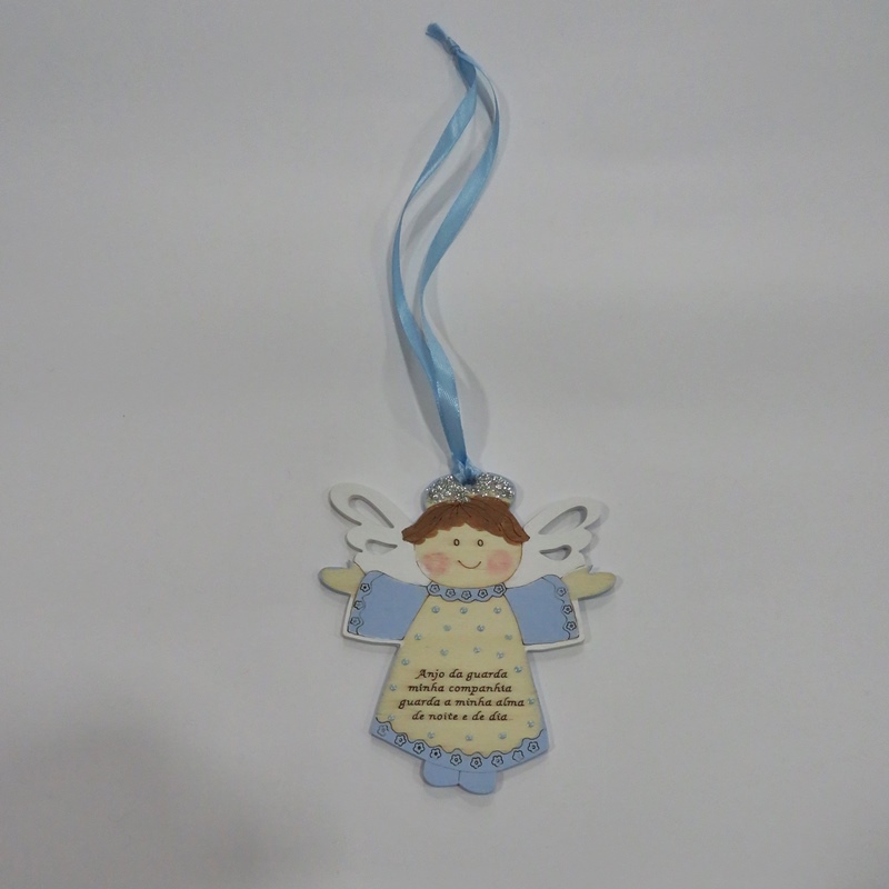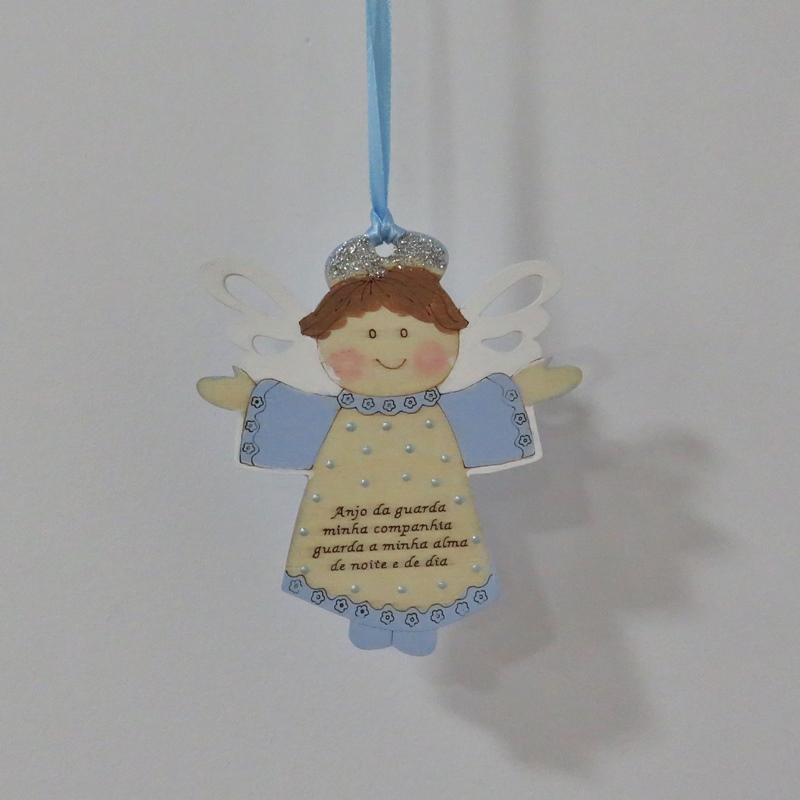 Anjo da Guarda em madeira com oração. Pode personalizar na cor que mais gostar.