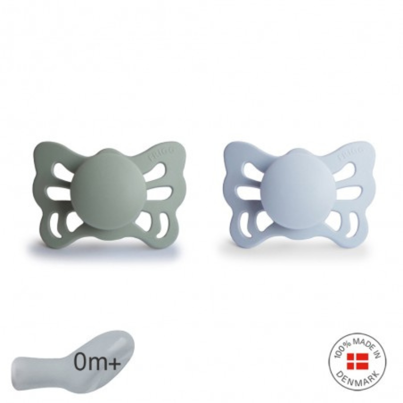 FRIGG Butterfly assemelha-se à forma de uma borboleta. O escudo com bordas onduladas possui grandes orifícios de ventilação e um centro redondo no meio que enfatiza a elegância. A chupeta é inspirada na linda borboleta. Não apenas por sua aparência, mas também por sua transformação mágica. Para se tornar uma borboleta, uma lagarta passa por um processo de transformação. Durante esse processo, a lagarta permanece em um casulo e eventualmente se transforma em uma linda borboleta. Essa transformação mágica é um símbolo do desenvolvimento da vida. Um bebé também passa por diferentes estágios de desenvolvimento dentro do útero da mãe e, ao final do processo de transformação, nasce para florescer no grande mundo. FRIGG Butterfly é uma chupeta anatómica com bico que reflete o formato da boca. A chupeta é projetada para colocar menos pressão no palato, gengivas e mandíbulas, e é o tipo de chupeta mais macio. Isso reduz o risco de dentes tortos e mordida torta. O design ortodôntico é perfeito para promover o correto desenvolvimento dos dentes, mandíbula e palato do bebé.