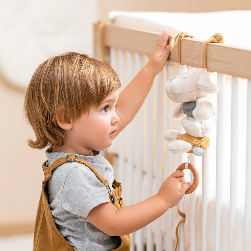 O fofinho Charlie com seu lindo pêlo conquista os corações dos recém-nascidos em todo o mundo. O adorável cão oferece inúmeras possibilidades de preensão, incluindo as orelhas, as patas e o rabo - e assim promove o desenvolvimento das habilidades motoras. Além disso, há uma função de vibração integrada que refina de maneira divertida o tato e as habilidades auditivas da criança e proporciona muito entretenimento.