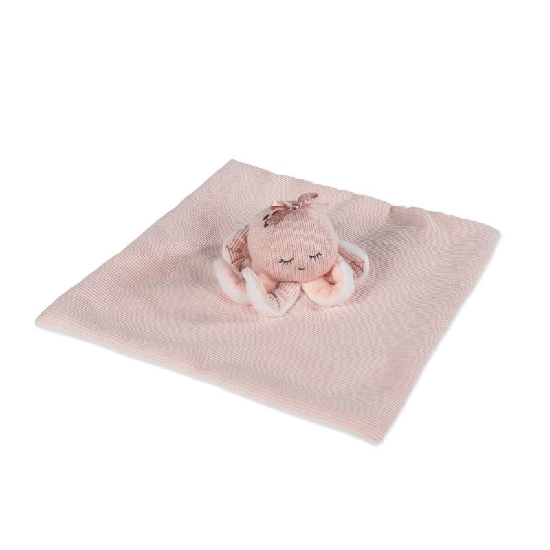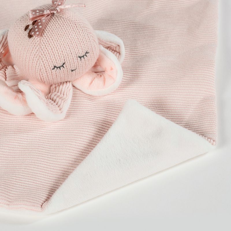 Doudou macio para o bebé. Ajuda a relaxar o bebé quando tocado. É feito de 70% poliéster reciclado. Está em conformidade com os regulamentos de segurança de brinquedos EN-71.