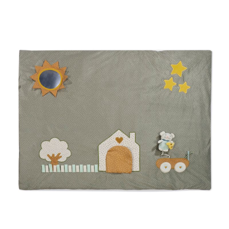 O tapete de atividades da Walking Mum Poppy é o complemento perfeito para estimular e entreter o seu bebé enquanto ele explora o seu ambiente. Concebida com pormenores encantadores e funcionalidades interactivas. Esta manta proporciona um espaço seguro e divertido para o seu bebé desenvolver as suas capacidades motoras e sensoriais. Fabricada em veludo macio, oferece uma superfície confortável e segura para o bebé se movimentar livremente, incentivando a independência e a exploração. Inclui uma variedade de actividades, como um sol com espelho, estrelas, uma casinha com uma porta oscilante e um adorável ratinho de peluche num carrinho, que incentivam a curiosidade e o jogo imaginativo. Texturas variadas e elementos interactivos ajudam a desenvolver as capacidades sensoriais e de motricidade fina do bebé. A grande superfície proporciona muito espaço para o bebé gatinhar e brincar. Ideal para utilizar em qualquer divisão da casa. O design e as cores neutras fazem com que esta manta se integre perfeitamente na decoração de qualquer casa, acrescentando um toque de ternura e diversão. Esta manta de actividades para gatinhar da Walking Mum é a escolha ideal para os pais que procuram um produto versátil e estimulante para os seus bebés. Proporciona um ambiente seguro e acolhedor onde os mais pequenos podem desenvolver as suas capacidades e desfrutar de horas de diversão. Fácil de dobrar e de transportar graças ao seu saco de transporte. Ideal para levar para a casa dos avós, para o parque, para o recreio.