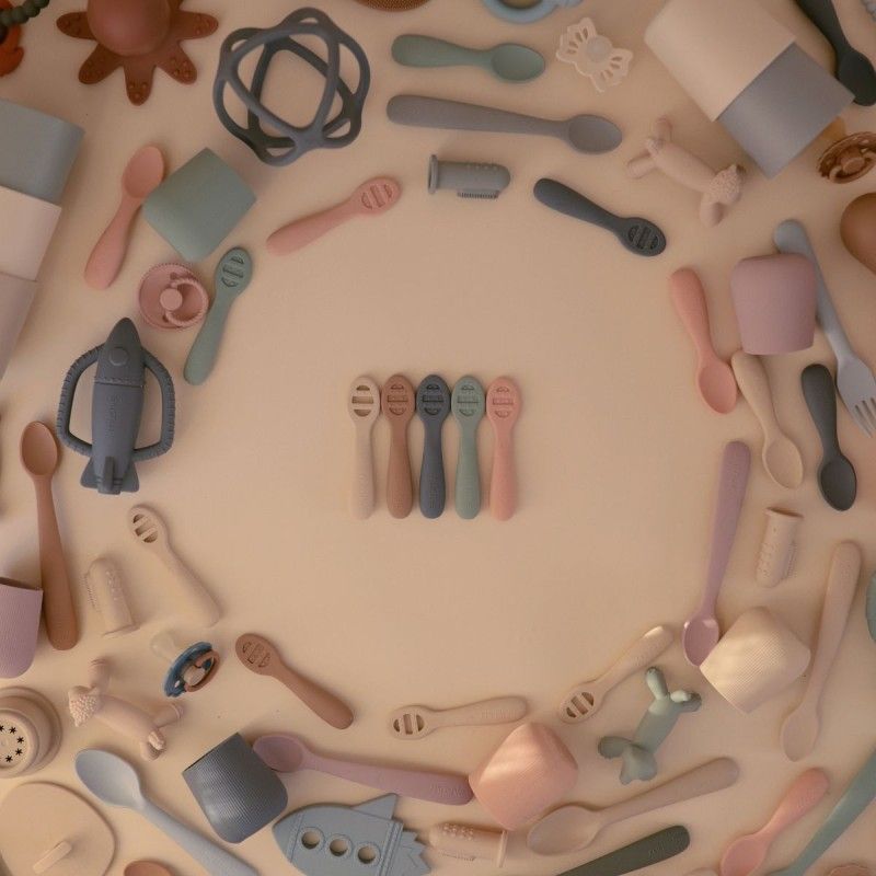 Pack de 2 colheres Mushie para a Primeira Alimentação do Bebé - as companheiras perfeitas para a emocionante jornada do bebé rumo à autoalimentação!
