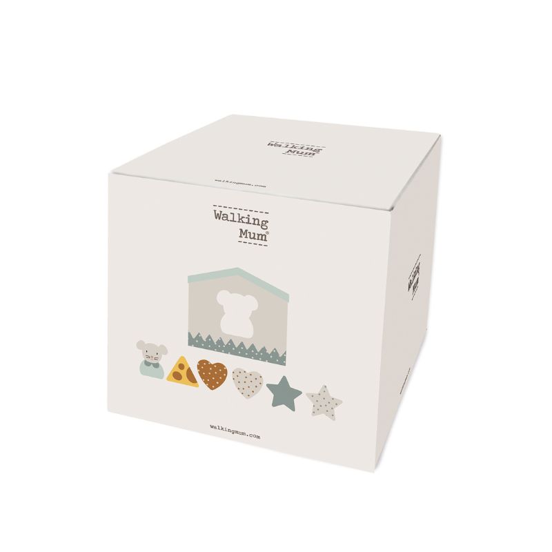 Encantadora casinha de madeira com formas geométricas da Walking Mum, especialmente concebida para estimular a curiosidade e o desenvolvimento precoce dos bebés. Este brinquedo educativo é perfeito para dar a conhecer aos mais pequenos o mundo das formas e das cores, enquanto desfrutam de horas de diversão. Favorece a coordenação óculo-manual e a motricidade fina. Permite às crianças criarem as suas próprias histórias e cenários. Casa de brincar em madeira com acabamento natural e teto em tons pastel. Inclui várias formas geométricas coloridas que se encaixam nos espaços correspondentes. Inclui 1 casinha de brincar e 6 peças geométricas (rato, queijo, estrela, coração, círculo e triângulo). O tamanho é ideal para as mãos pequenas agarrarem e manipularem facilmente as peças.