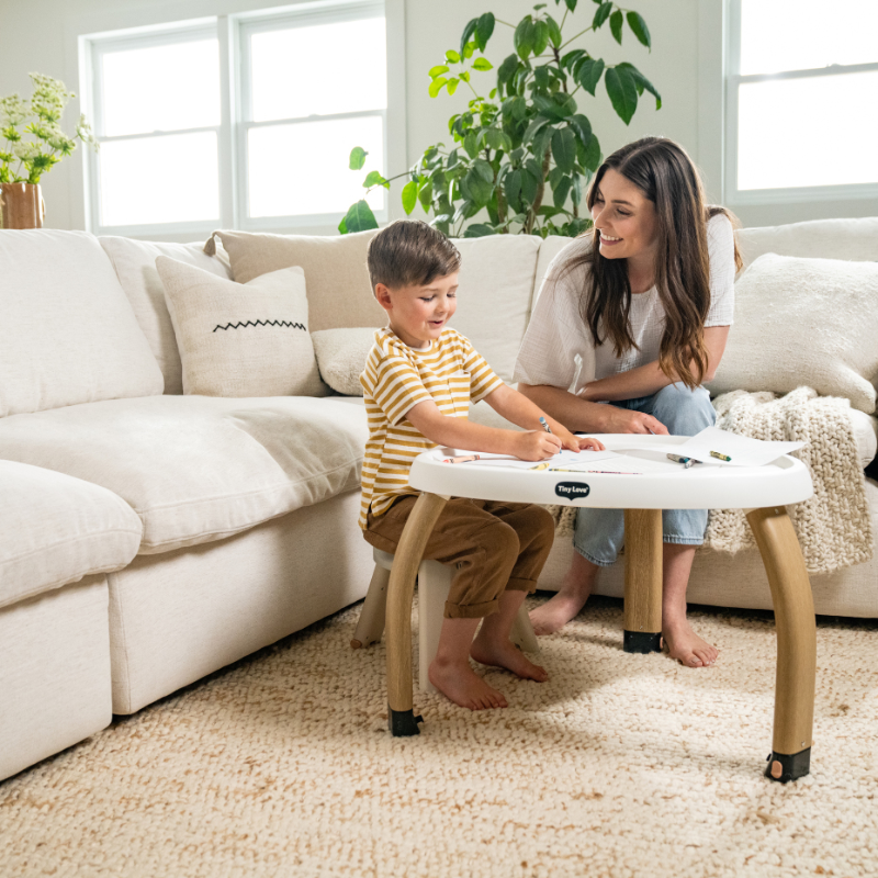 - Converte-se facilmente em mesa e cadeira de criança, criando um canto de brincadeira maravilhoso para o seu pequenote explorar o próximo nível de capacidades motoras finas.