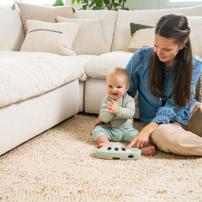 - O piano eletrónico do centro de atividades possui luzes e sons que envolvem os bebés enquanto estão de barriga para baixo, fazendo com que o tempo passe a voar, enquanto fortalecem os músculos dos ombros, pescoço e braços.