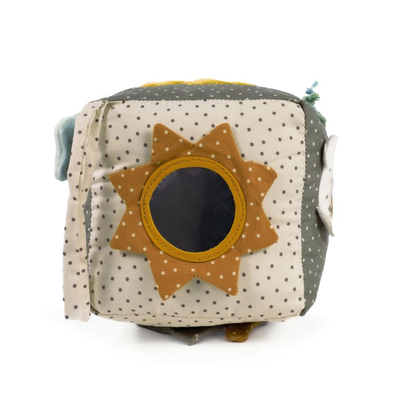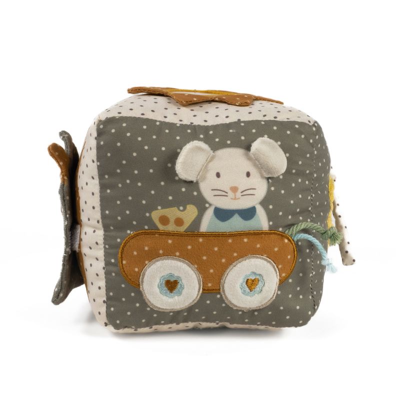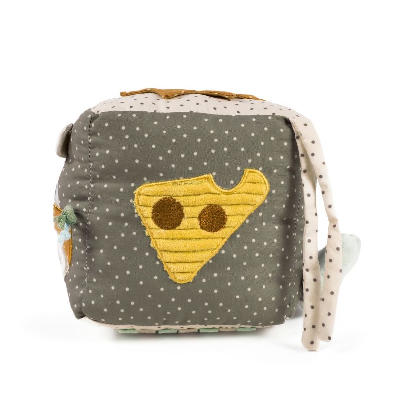 Este encantador cubo de actividades para bebés foi concebido para estimular o desenvolvimento sensorial e motor das crianças pequenas. Cada face do cubo oferece uma experiência diferente, com texturas variadas e personagens adoráveis que irão captar a atenção do bebé. De tamanho perfeito para as mãos pequenas, este cubo é leve e fácil de manusear pelos bebés. Com um ratinho encantador e um pedaço de queijo numa das faces, este cubo está cheio de pormenores atraentes e cores suaves que estimulam os olhos do bebé. Inclui diferentes texturas e elementos interactivos, como uma corda e apliques bordados, ideais para o desenvolvimento sensorial e a coordenação mão-olho. Este cubo de actividades é ideal como primeiro brinquedo do bebé, um excelente presente para chás de bebé, aniversários ou qualquer ocasião especial para os mais pequenos.