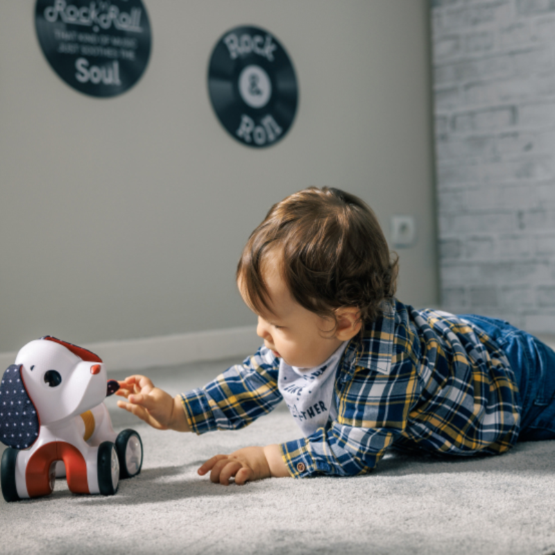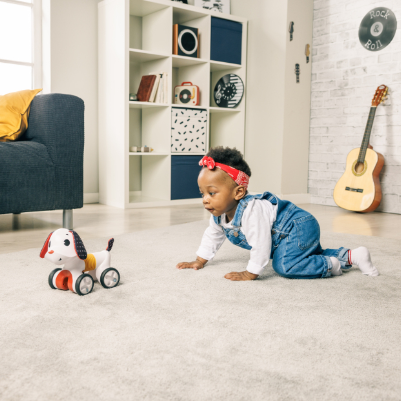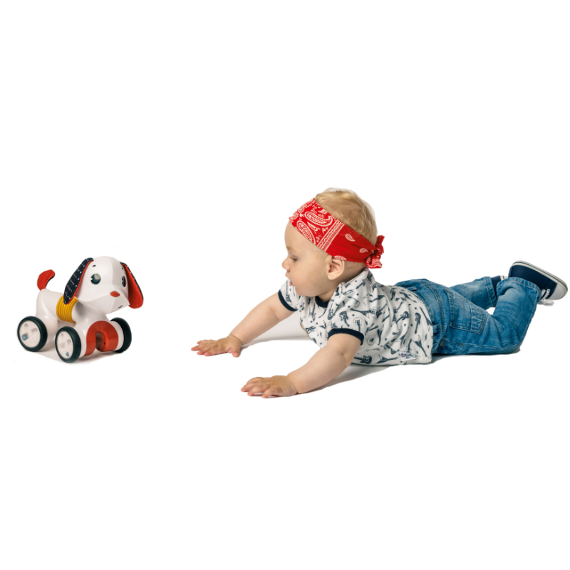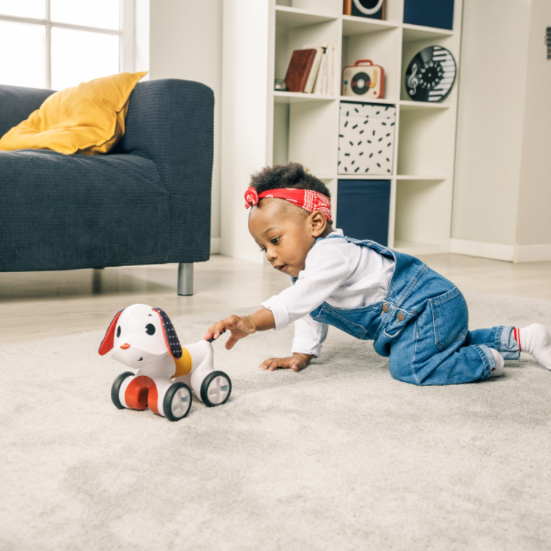 • Cãozinho rastejante que incentiva as crianças a moverem-se