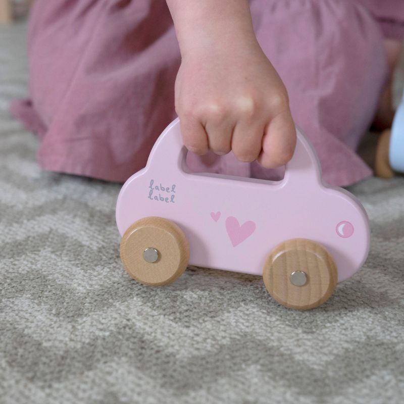 Este carro aerodinâmico é feito de madeira de faia de alta qualidade certificada pelo FSC e foi pintado com tinta à base de água, adequada para crianças. As crianças pequenas pegam facilmente o carro pela alça para deixá-lo dirigir ou levá-lo para onde quiserem. O design aerodinâmico do carro, as cores suaves em combinação com rodas de madeira natural são perfeitas para estimular e desenvolver as habilidades motoras da sua criança. Seu filho entrará em seu mundo de fantasia com estilo.