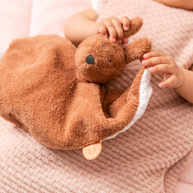 O doudou é o primeiro amigo de um bebé e um companheiro indispensável desde o nascimento. Os doudous são particularmente adequados para recém-nascidos e bebés prematuros. Eles têm muitas possibilidades de agarrar para mãos pequenas. Um porta chupeta é acoplado para tornar o bonequinho mais adequado para o dia a dia dos bebés. Dica: Compre dois de uma vez - assim você pode alternar quando um dos doudous está na máquina de lavar e evitar lágrimas quando seu filho está sem um.