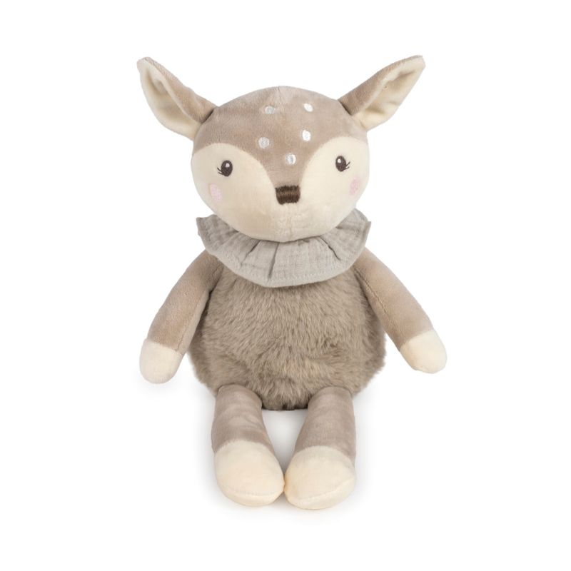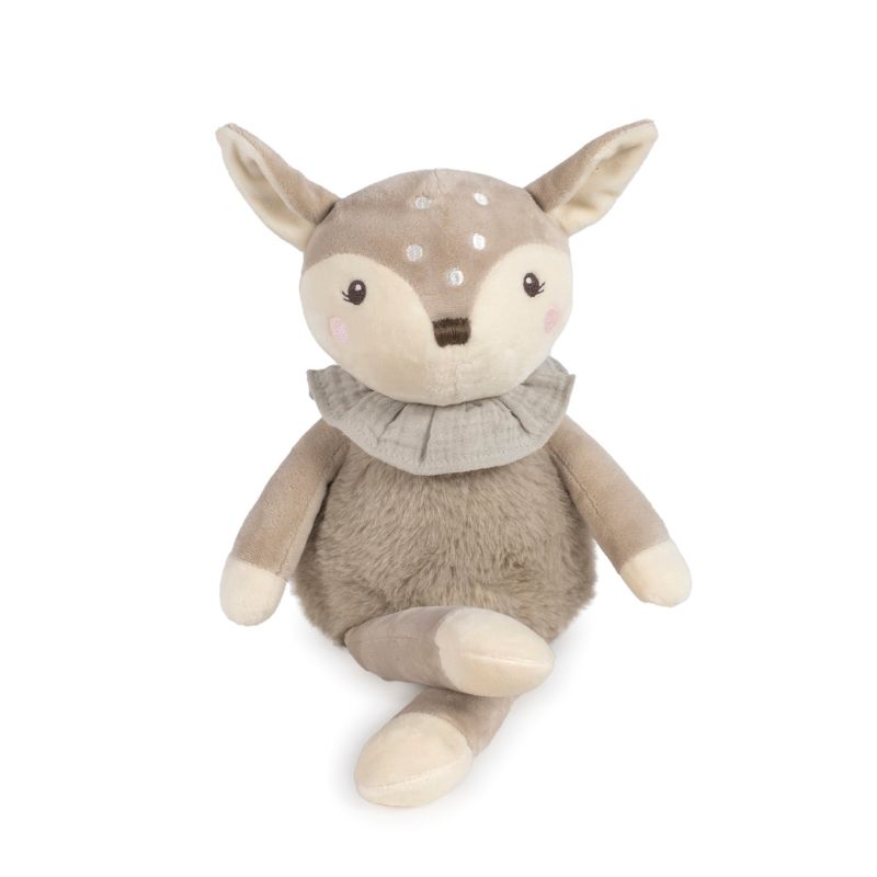 Este adorável peluche Nara da Pasito a Pasito foi concebido para oferecer suavidade, mimos e companhia ao seu bebé desde os primeiros dias. Inspirado num doce veado com pormenores bordados, sem partes pequenas nem elementos duros. Este cervo de 38 cm é feito de uma combinação de veludo e tecido de pelúcia ultra-suave, perfeito para acariciar, estimular o sentido do tato e dar segurança aos mais pequenos. Fácil de segurar e acariciar, proporcionando conforto e companhia. Favorece o desenvolvimento emocional e sensorial do bebé. Este peluche de veado Pasito a Pasito é o companheiro ideal para os momentos de brincadeira e de descanso, proporcionando calma e doçura ao bebé.