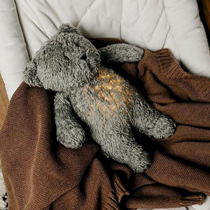 O ursinho Moonie é um brinquedo macio que acompanhará o seu filho com sons e luz para noites mais tranquilas. Possui 5 sons da natureza, uma canção de embalar e uma lâmpada led dentro da barriga do urso com 7 configurações de luz diferentes.