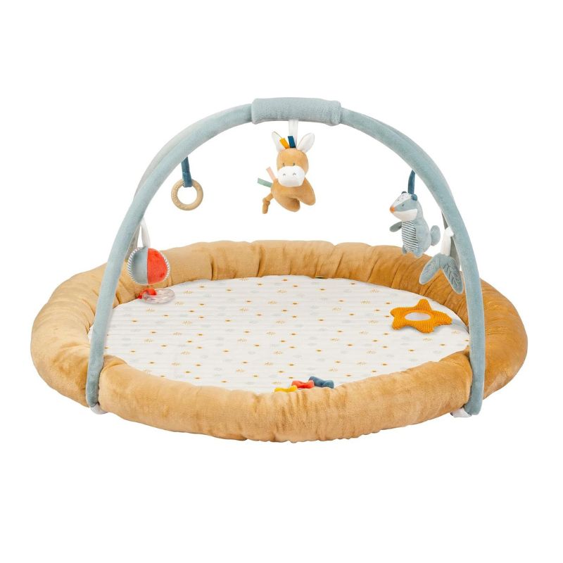 Este lindo tapete de brincar com arcos e uma borda grossa acolchoada é perfeito para permitir que seu bebé brinque com segurança e conforto. A raposa Félix, o burro Leo e muitas atividades divertidas proporcionam ao seu bebé momentos de brincadeira inesquecíveis. O mordedor, os peluches com papel amassado, o guincho, o chocalho, as etiquetas e outros brinquedos convidam o seu filho a agarrá-los e explorá-los. Desta forma, os reflexos de preensão do seu filho são estimulados através da brincadeira. O tapete de brincar é lavável à máquina e pode ser facilmente retirado dos arcos.