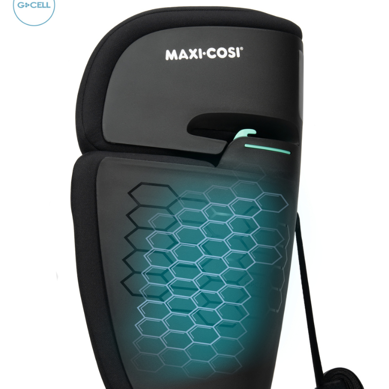 • A estrutura G-CELL sempre ligada e sempre ativada está integrada nos painéis laterais e no apoio de cabeça da cadeira auto, dispersando o impacto e reduzindo o risco de ferimentos numa colisão lateral.