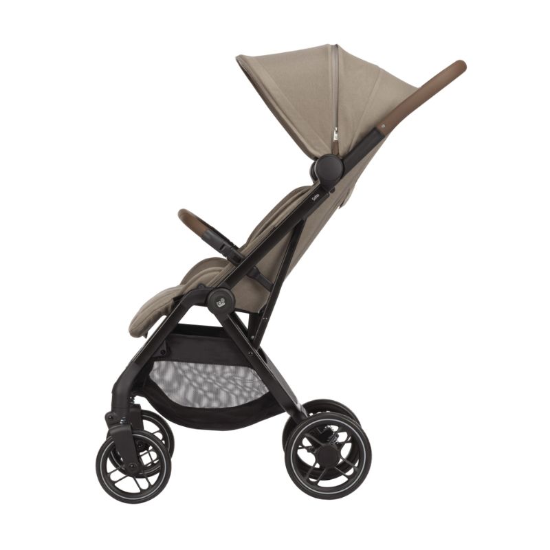 Rodas grandes à prova de furos Suspensão nas 4 rodas Sistema de viagem 3 em 1, permitindo que troque facilmente o assento com a alcofa Oria ou uma cadeira auto compatível Arnês de 5 pontos ajustável só com uma mão Apoia braços rotativo 360º para facilitar a colocação do bebé Feito com tecidos 100% reciclados, ecológicos Forra amovível e lavável Cesto de armazenamento espaçoso até 5 kg e bolso para os pais Compatível com alcofa Oria (adaptadores incluídos)