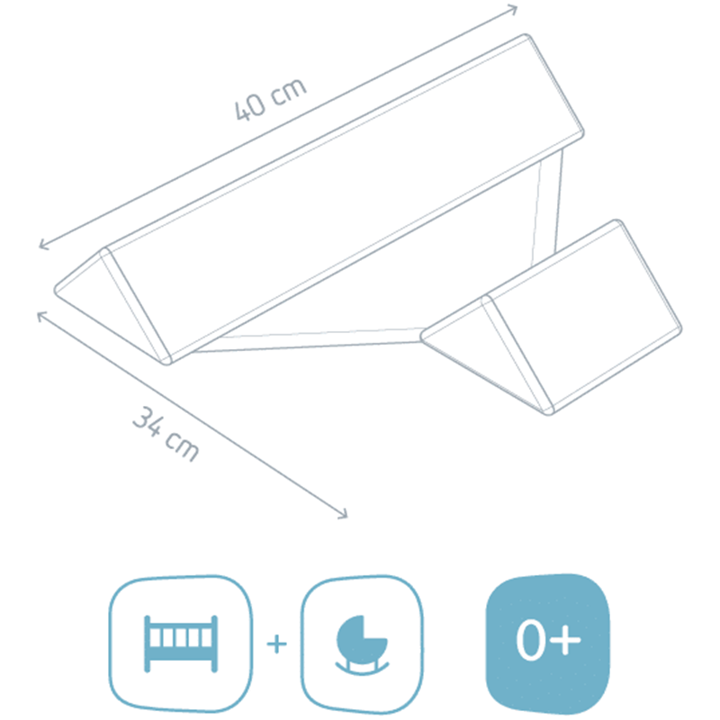 O posicionador lateral foi especialmente concebido para manter o bebé deitado de lado de forma confortável e segura.