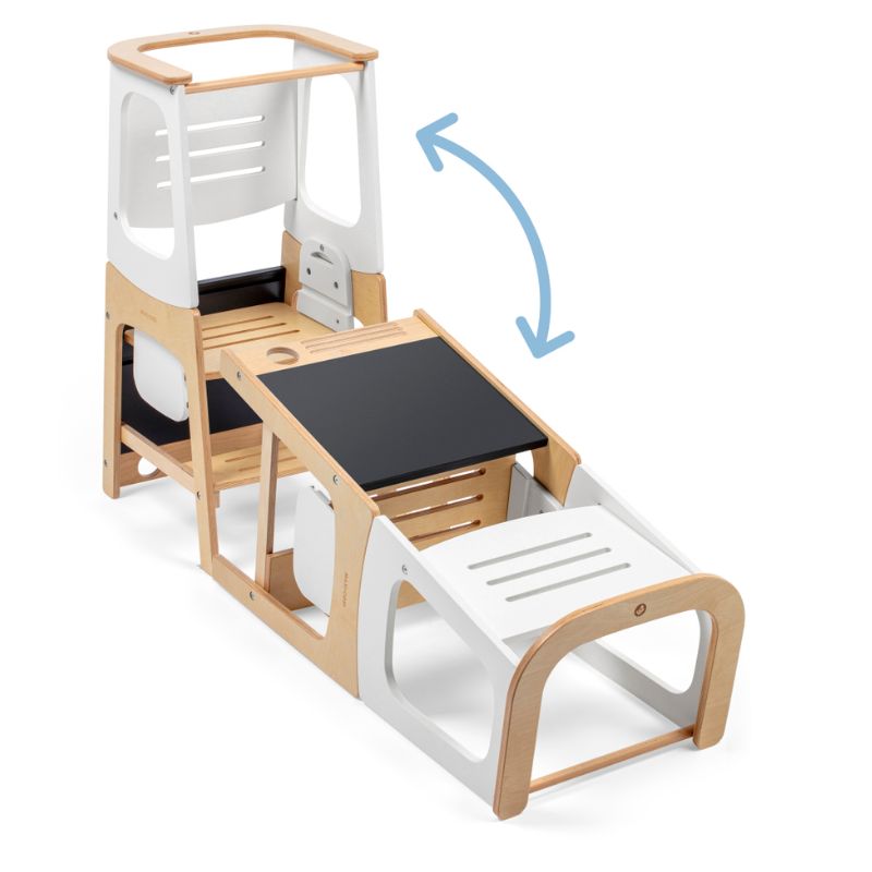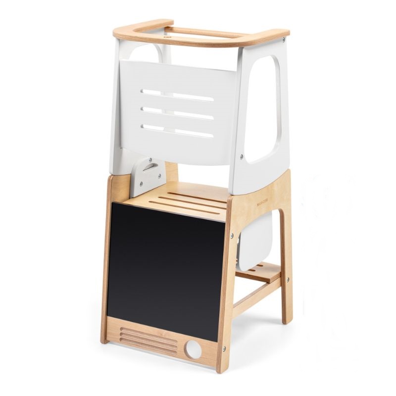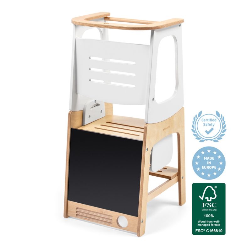 - As crianças podem utilizar a Toucan em segurança no modo torre de aprendizagem a partir dos 18 meses até aos 6 anos de idade. Concebida de acordo com o método Montessori, incorpora a ideia de que as crianças aprendem melhor em ambientes preparados para permitir atividades independentes. A altura ajustável significa que a Toucan se adapta às crianças durante os primeiros anos de vida e até ao momento em que deixam de precisar desse suporte de altura. No modo torre de aprendizagem, o seu pequeno ajudante está a salvo de quedas graças à barra de segurança traseira. A versatilidade da Toucan vai para além da infância, servindo de banco para crianças e adultos, garantindo um lugar no seu lar durante muitos anos.