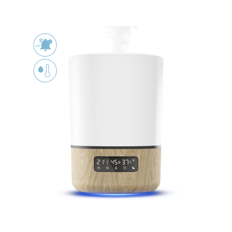- Pode controlar e programar totalmente o humidificador do bebé através da app ou utilizar os botões no ecrã de LED