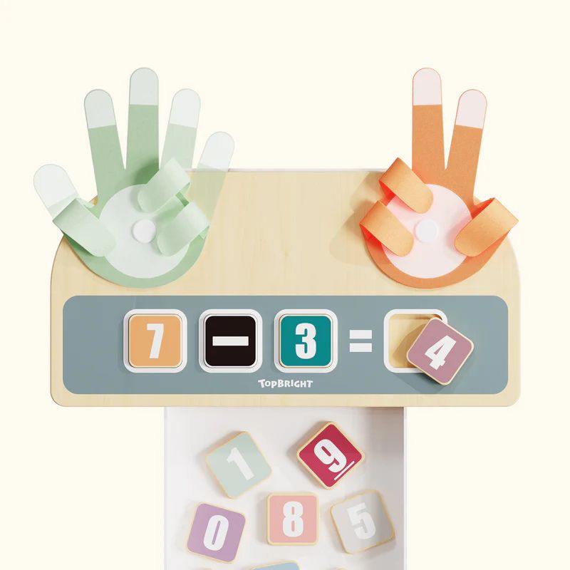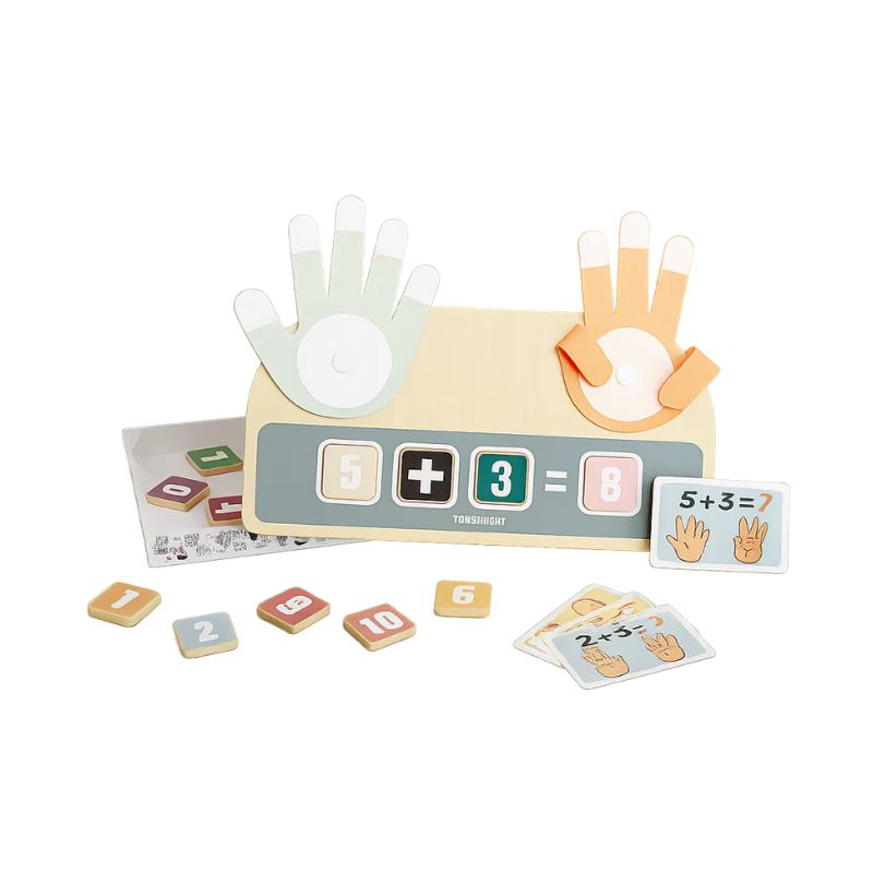 O Finger Math ajuda as crianças a explorar os números de forma interativa, transformando a contagem e a aritmética simples em uma brincadeira prática. Com mãos de feltro coloridas e dedos com fecho de velcro, as crianças podem mover as peças enquanto resolvem problemas de adição e subtração. As peças de madeira com números e os cartões de atividades auxiliam no reconhecimento dos números e na resolução de problemas iniciais. Uma caixa de armazenamento resistente mantém tudo organizado. Ideal para crianças em idade pré-escolar e nos primeiros anos de aprendizagem que procuram um brinquedo matemático inspirado no método Montessori.