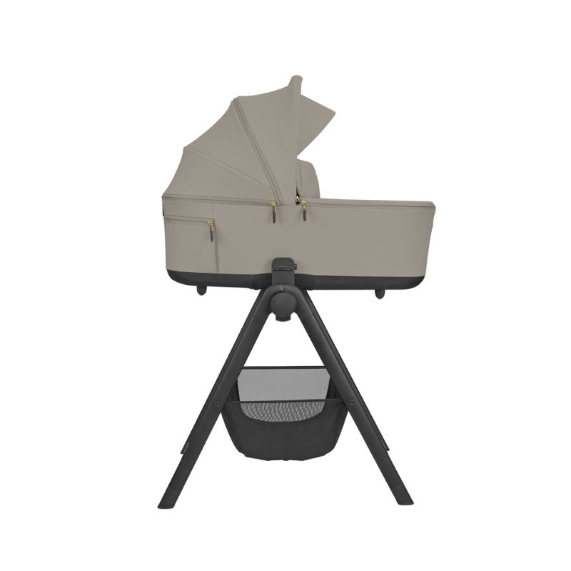 Suporte para alcofa Goya Platinum, para manter o seu bebé perto de si em casa. Contém uma cesta espaçosa para arrumos e é bastante compacto para arrumar quando não estiver a ser utilizado. Encaixa e desencaixa em segundos, combinando praticidade com um design elegante e moderno.