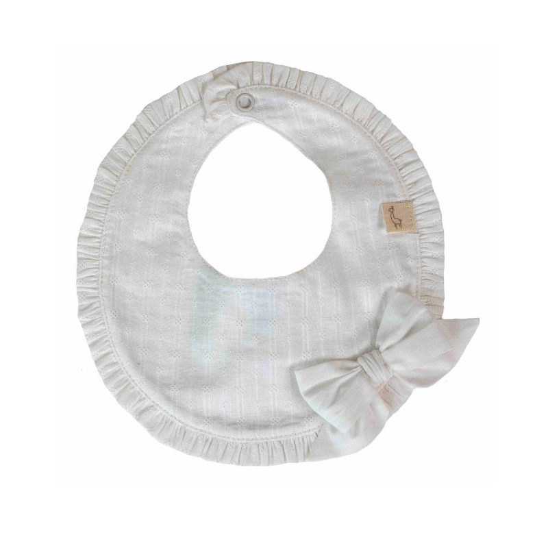 Babete branca com folho e laço do tema Pure da Baby Gi.