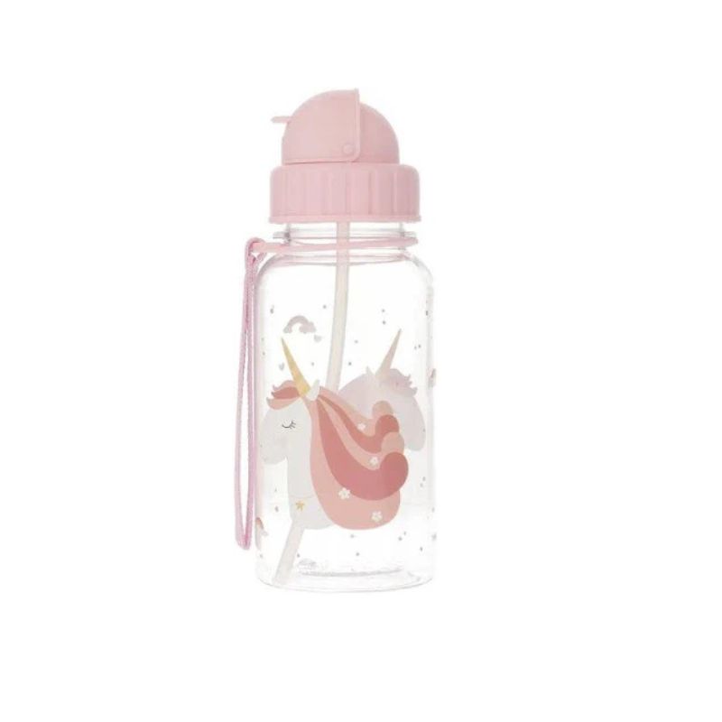 Esta garrafa tem uma palhinha de silicone dobrável que sai automaticamente quando a tampa é aberta e é ideal para levar para a escola, e uma alça longa que permite que seja transportada numa mochila ou num carrinho de bebé.