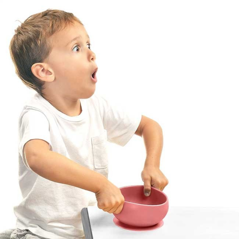 A taça em silicone Bowly, tem base de sucção para não sair do lugar e tampa para armazenar a comida dos mais pequenos.