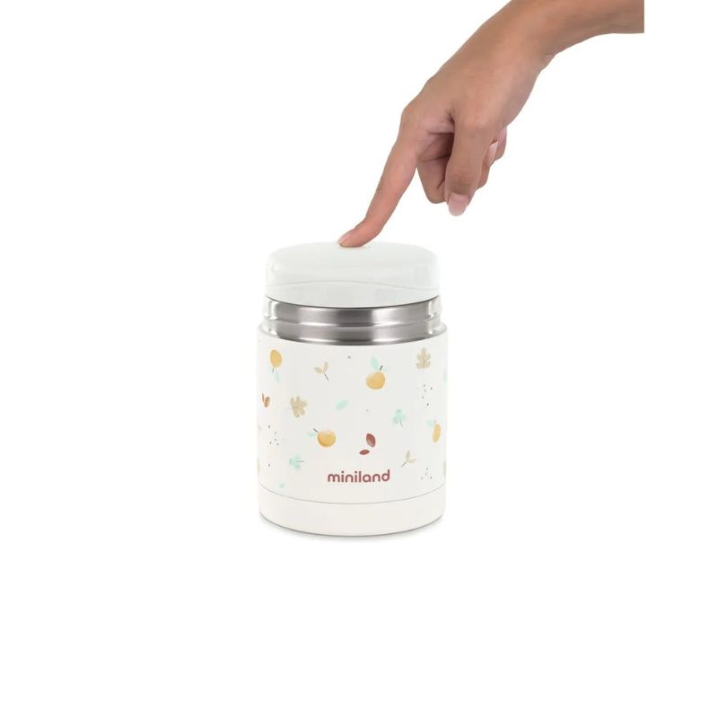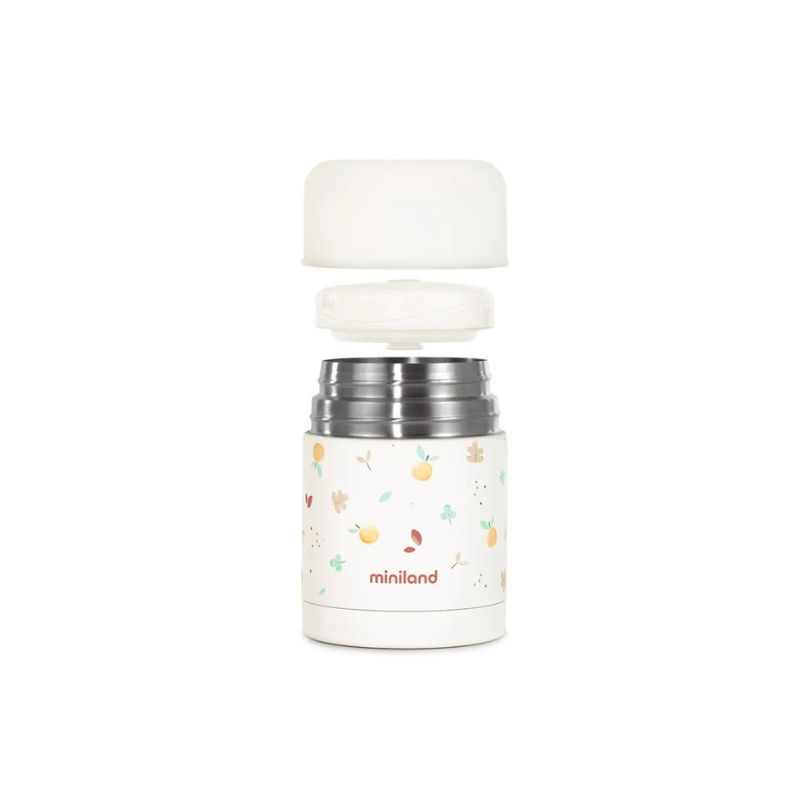 Termos para comida e outros alimentos sólidos com capacidade de 600 ml. Mantém a temperatura por até 24 horas, permitindo transportar refeições quentes e frias, como papinhas de bebé, mantendo-as na temperatura desejada. Extremamente útil para refeições fora de casa ou para deixar seu bebé sob os cuidados de outra pessoa. Com parede dupla de aço inoxidável e uma exclusiva camada interna de cobre, garantindo que a temperatura não seja transferida para o exterior da garrafa térmica. Possui vedação hermética com rosca para segurança e higiene durante o transporte.
