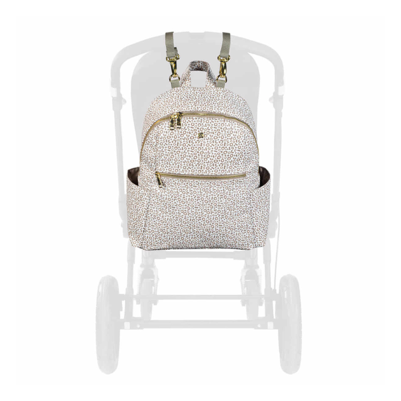 A Mochila London Animal Print tem uma grande capacidade para transportar tudo o que você e seu bebé precisam. Bolsos internos e externos para manter tudo à mão e em ordem. Compartimento para computador ou tablet. Possui 2 alças grandes ajustáveis para que possa usá-la pendurado nas costas e outras duas alças pequenas para que possa usá-la pendurado no carrinho.