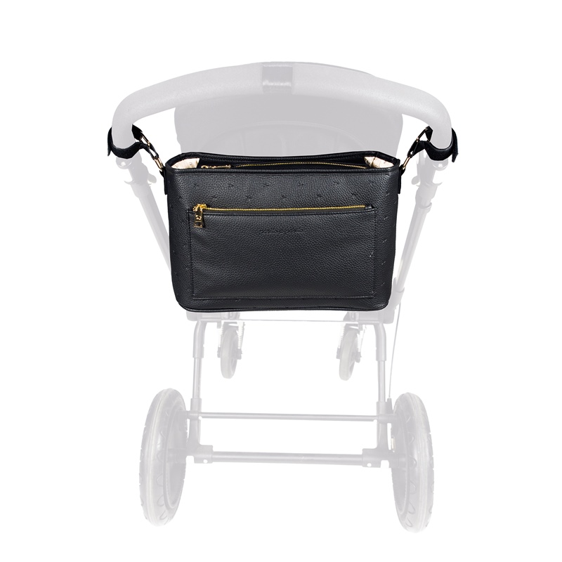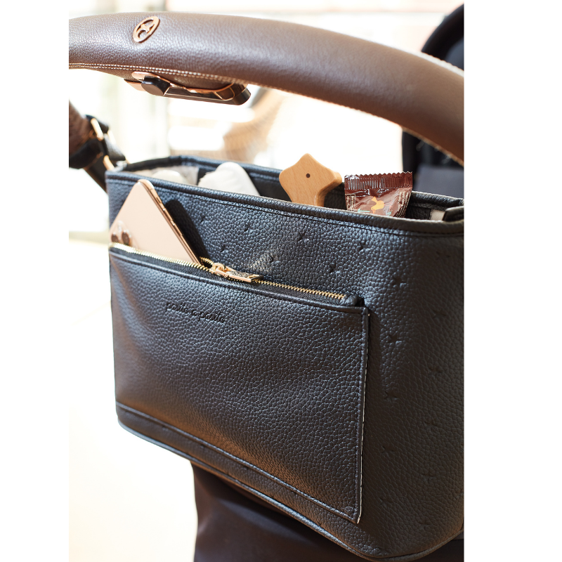 O organizador de carrinho London tem capacidade para transportar tudo o que precisa para um passeio rápido com o seu bebé. Tem bolsos exteriores e interiores para manter tudo arrumado e à mão, e tem também um bolso plástico para colocar as peças sujas do seu bebé. Com duas alças pequenas e uma grande, pode usar o organizador pendurado no carrinho ou colocá-lo ao ombro.