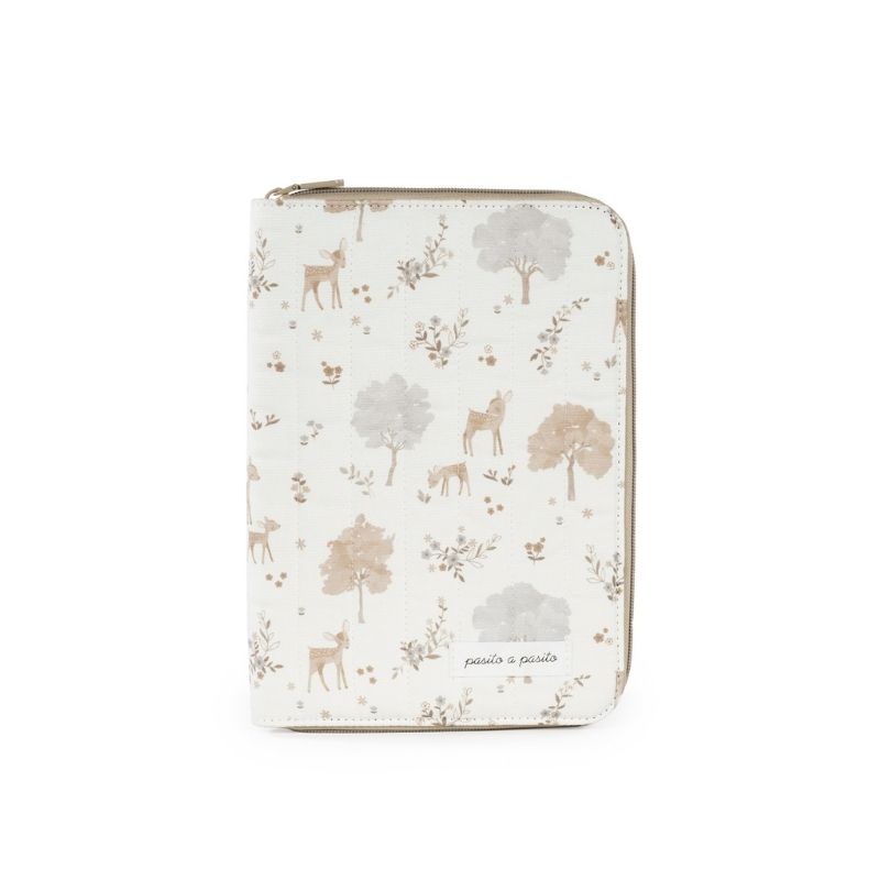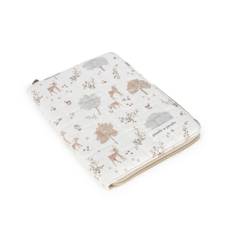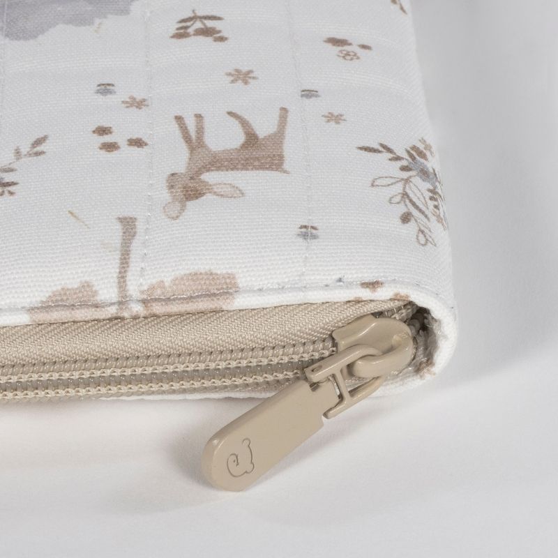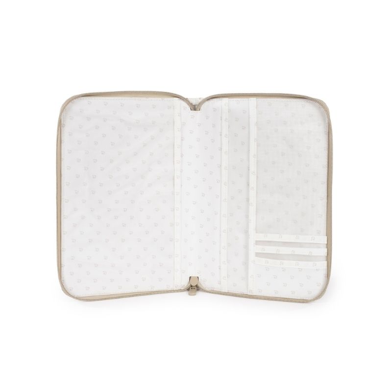 Porta-documentos funcional em algodão que combina com a bolsa de maternidade. Um acessório essencial para levar para qualquer lugar e que ajudará a manter todos os registos médicos e documentos do seu bebé organizados.É feito de material durável e macio, tem bolsos em cada lado e é forrado por dentro. Possui um prático fecho para guardar tudo em segurança.