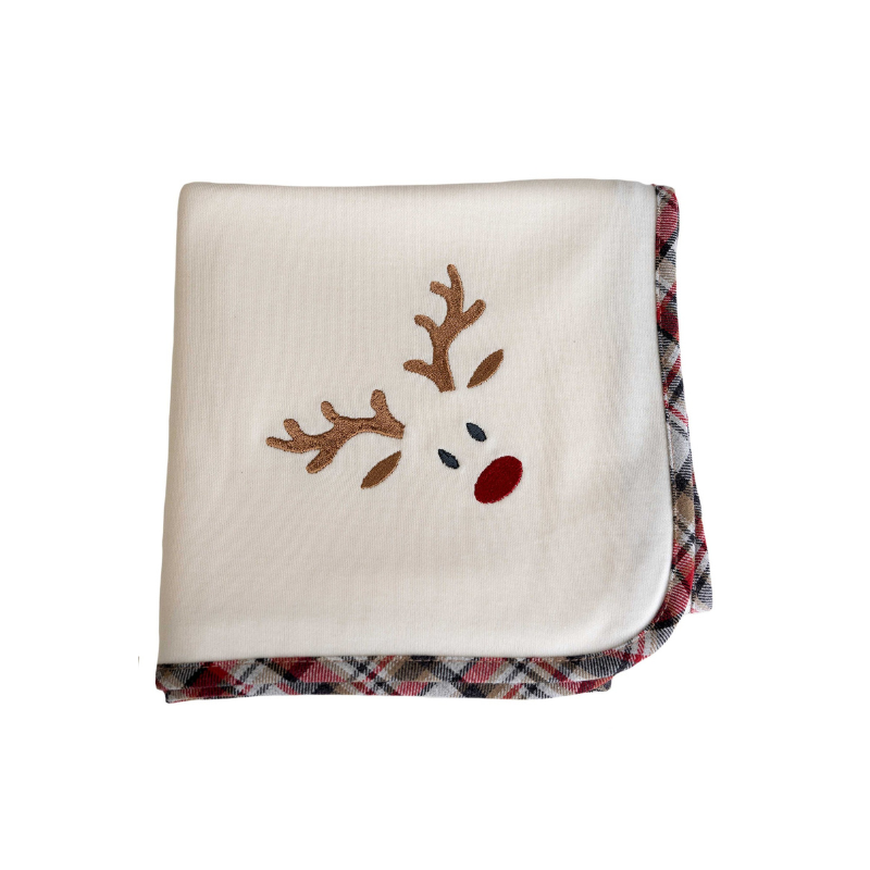 Fralda macia com uma amorosa rena bordada do tema Wood da Baby Gi.