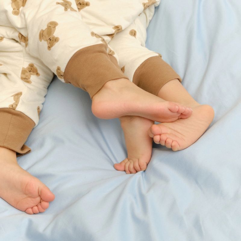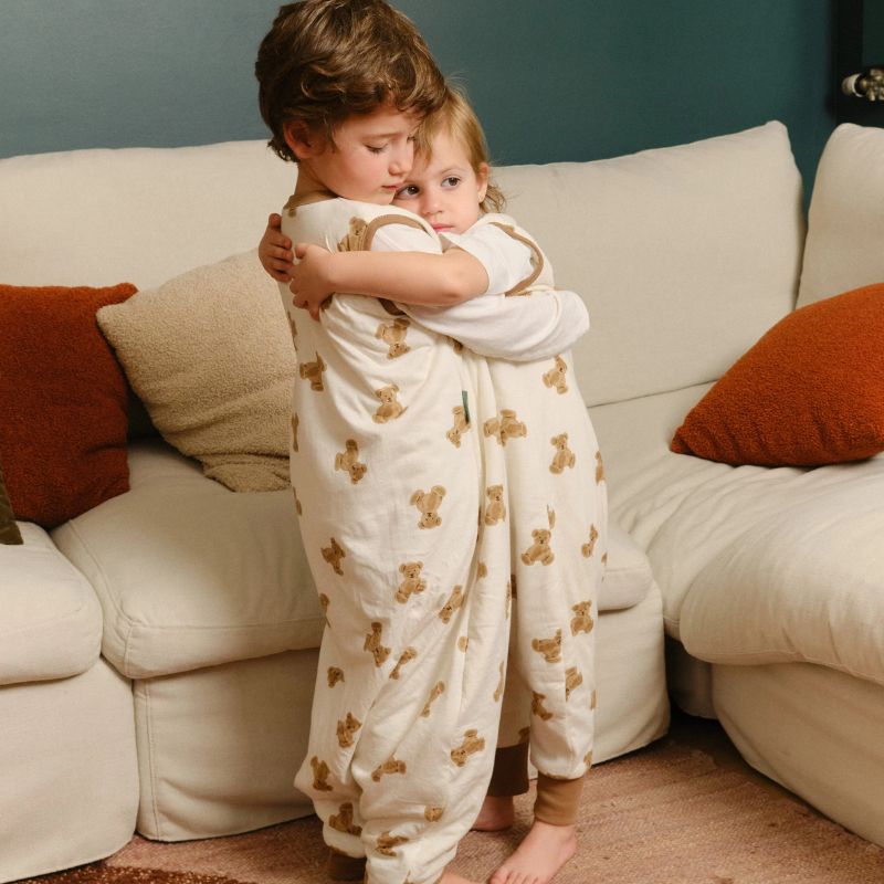 Nosso saco de dormir de meia temporada é uma peça de roupa quente levemente acolchoada, projetada para ser usada sobre o pijama para manter o seu filho aquecido enquanto dorme, brinca, caminha ou gatinha.