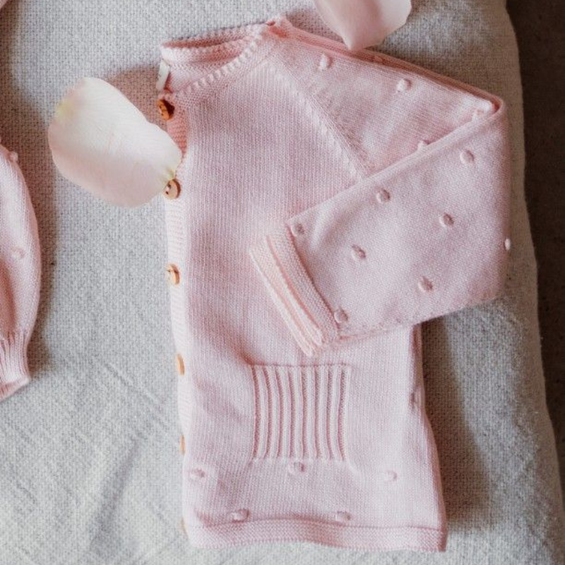 de manga comprida tricotado em malha fina de algodão suave, ideal para bebés