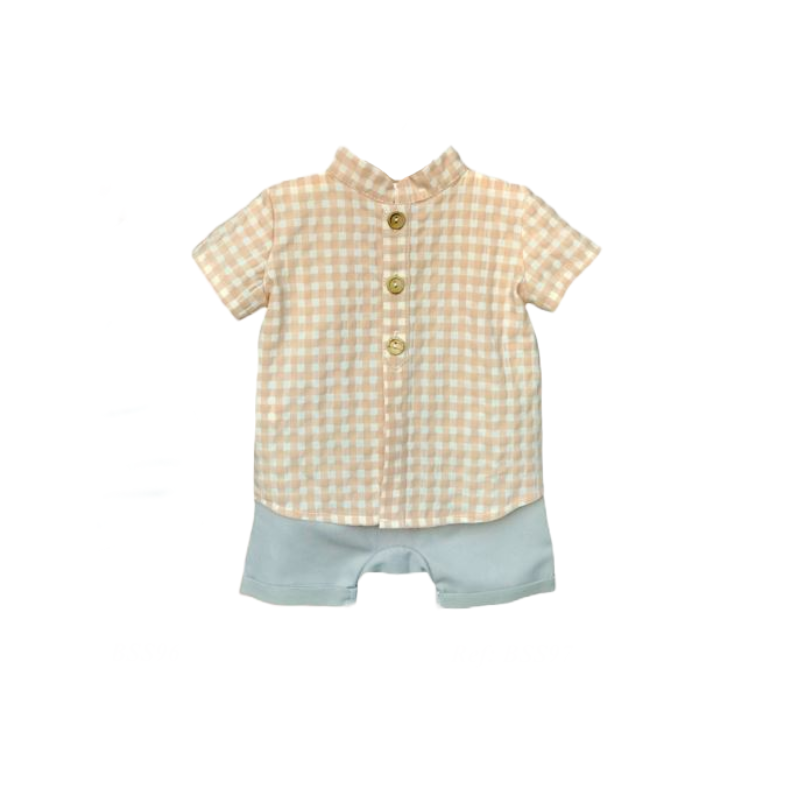 Conjunto de camisa xadrez e calção da Valentina.