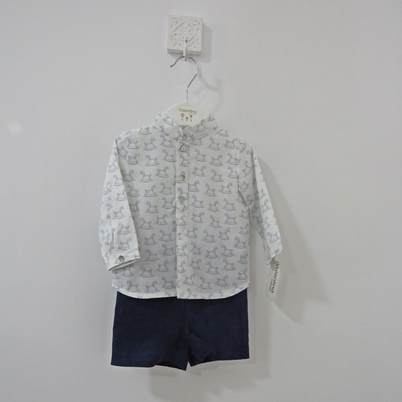 O conjunto Horse de menino da Valentina é composto por calção de bombazine e uma camisa com pequenos cavalinhos.