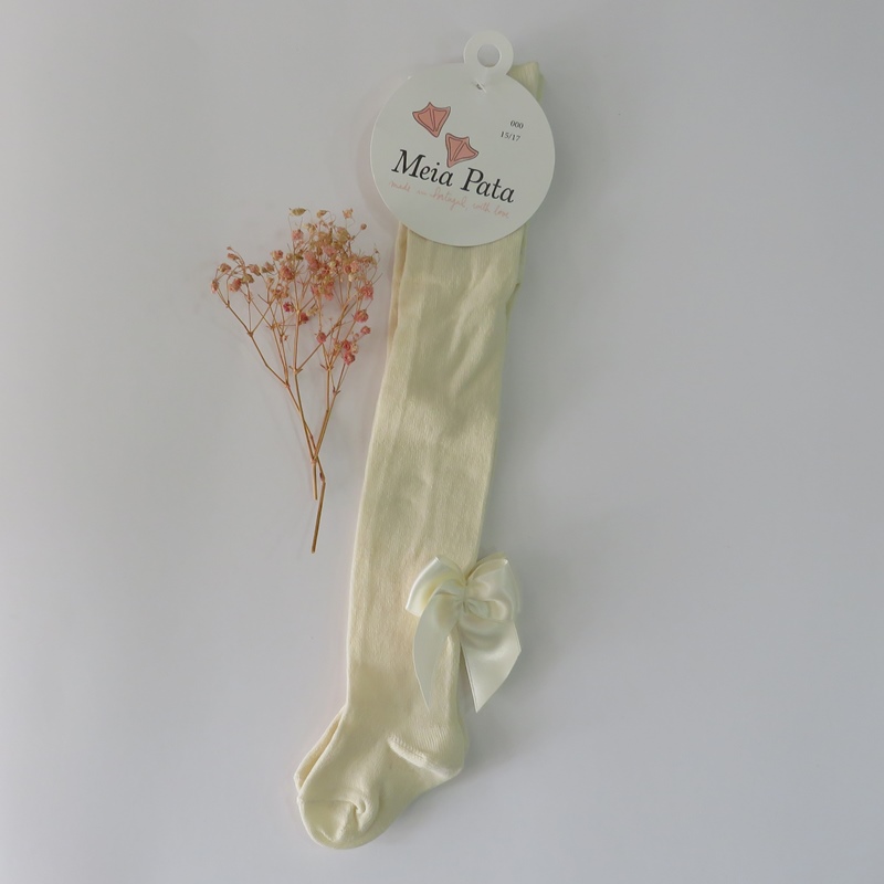 Collants lisos pérola com laço de cetim atrás da Meia Pata 1