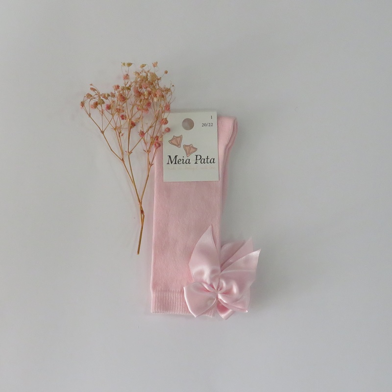 Meia lisa pelo joelho rosa bebé com laço de cetim atrás da Meia Pata 1