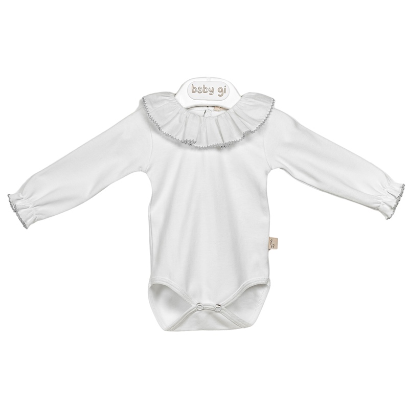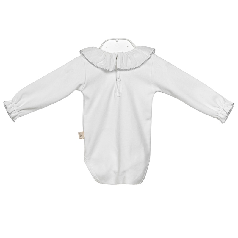 Body 100% algodão com gola de folho, com picueta de variadas cores.